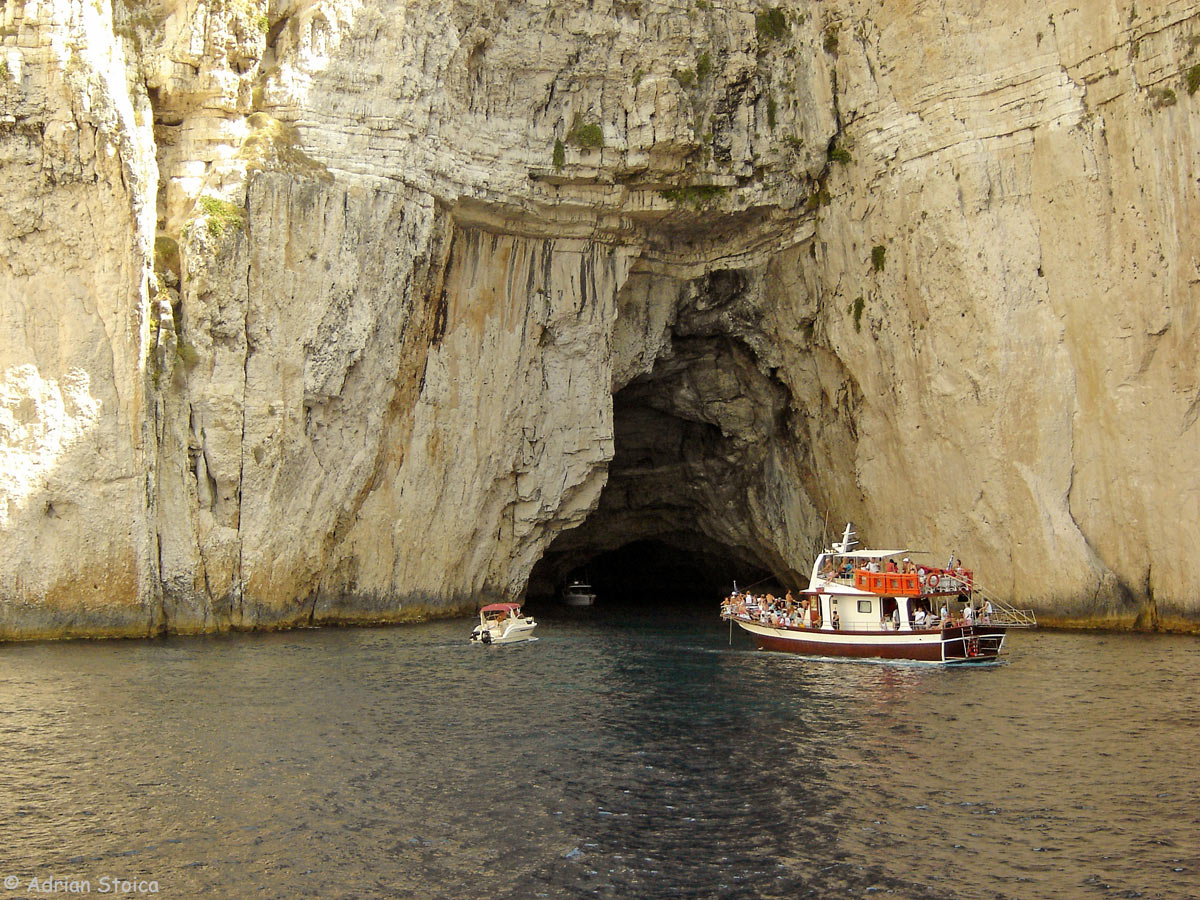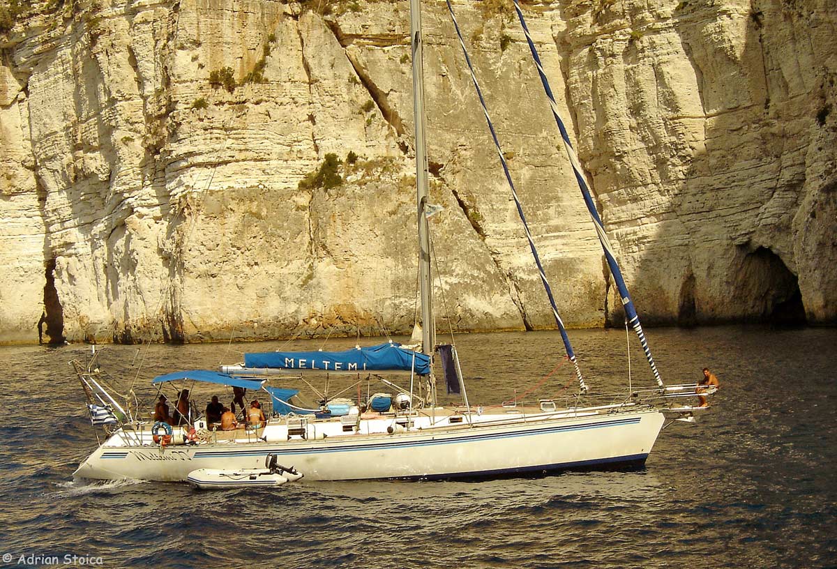 Ne imbarcam inapoi pe vas si ne indreptam spre Antipaxos. Trei kilometri ne despart de mica insula si ajungem acolo in vreo 20 de minute. Se pare ca vecina mai marelui Paxos nu are decat vreo 5 kilometri patrati si numai 20 de locuitori (in 2011). Pentru noi, asta n-a contat prea mult, caci n-am debarcat, ci ne-am oprit cam la o suta de metri de tarm. Pentru inot. Intr-o apa superba, careia n-ai cum sa-i rezisti.