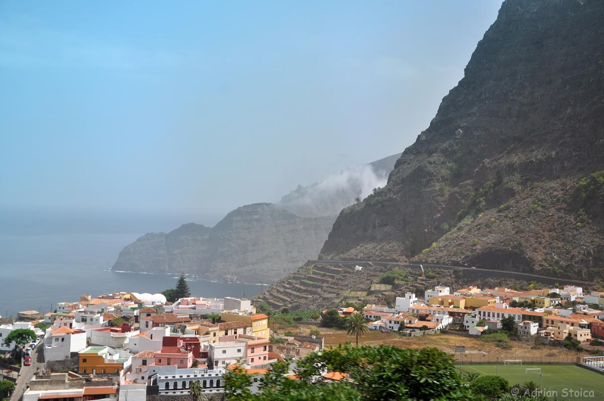De la restaurantul Las Rosas, autocarul ne poarta spre ocean. Trecem pe langa Agulo, locul de unde, intr-o zi cu atmosfera clara se poate vedea El Teide, in Tenerife. Astazi, claritatea lasa de dorit si, cu toate ca soarele lumineaza din plin, oceanul e in continuare acoperit de pacla deasa.
