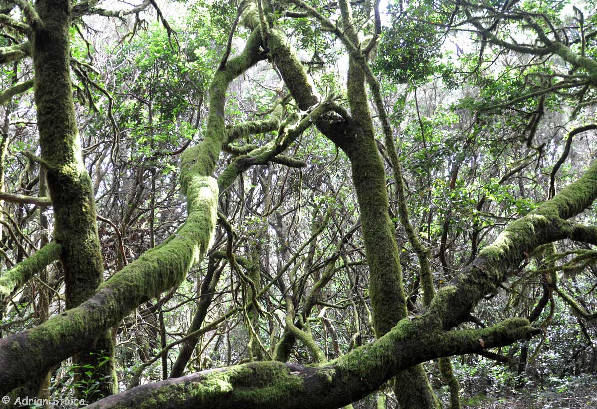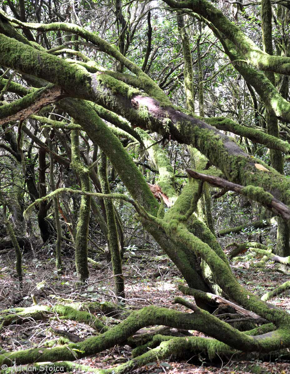 Suntem la doar cativa kilometri de Laurisilva, batrana padure de dafin. In cateva minute ajungem si ne cufundam in verdele care pare ca explodeaza, erupe din pamant. Trunchiurile copacilor sunt zvelte si mladioase. Ai zice ca se plictisesc sa creasca prea mult in aceeasi directie. Contorsionisti ai padurii, copacii din padurea de dafini au avut, candva, rude in tot bazinul mediteranean. Odata cu era glaciara, „verii” din Europa au disparut si paduri ca cea din La Gomera se mai gasesc in apropierea continentului nostru, doar in cateva din insulele Canare, Madeira si Azore, fiindca aici clima a ramas aproape neschimbata in ultimele zeci de mii de ani.